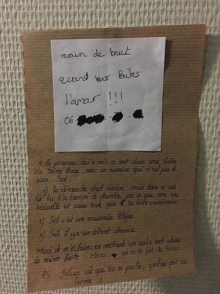 A la personne qui'a mis ce mot dans une boîte du 5éme étage, avec un numéro qui n'est pas le sien. Soit: